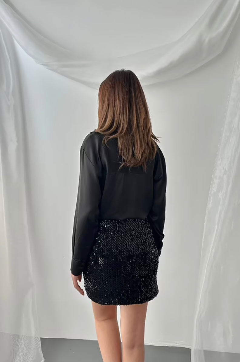Jupe Courte Noire à Paillettes – Glamour & Festive